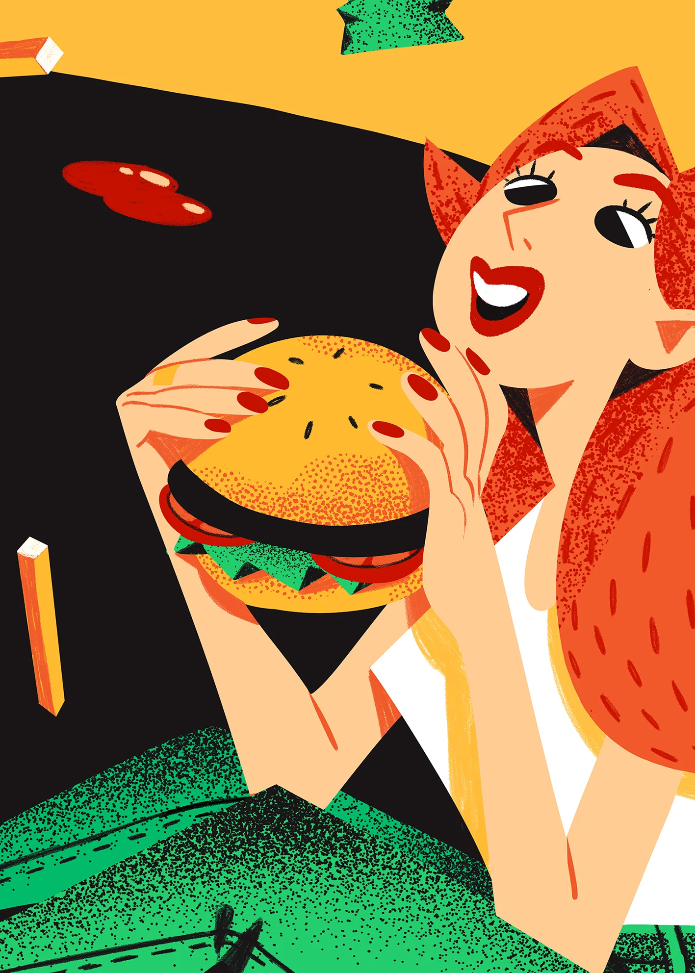 I was commissioned to create an illustration to cover the entire food truck of Burger Van, a very popular local burger establishment. They wanted something colorful and yummy, but with a twist. I ended up pushing the shapes a bit, using minimal textures and colors while playing around with some delicious elements.